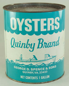 Quimby Brand one pint oyster tin. Excellent condition with lid. $40. |